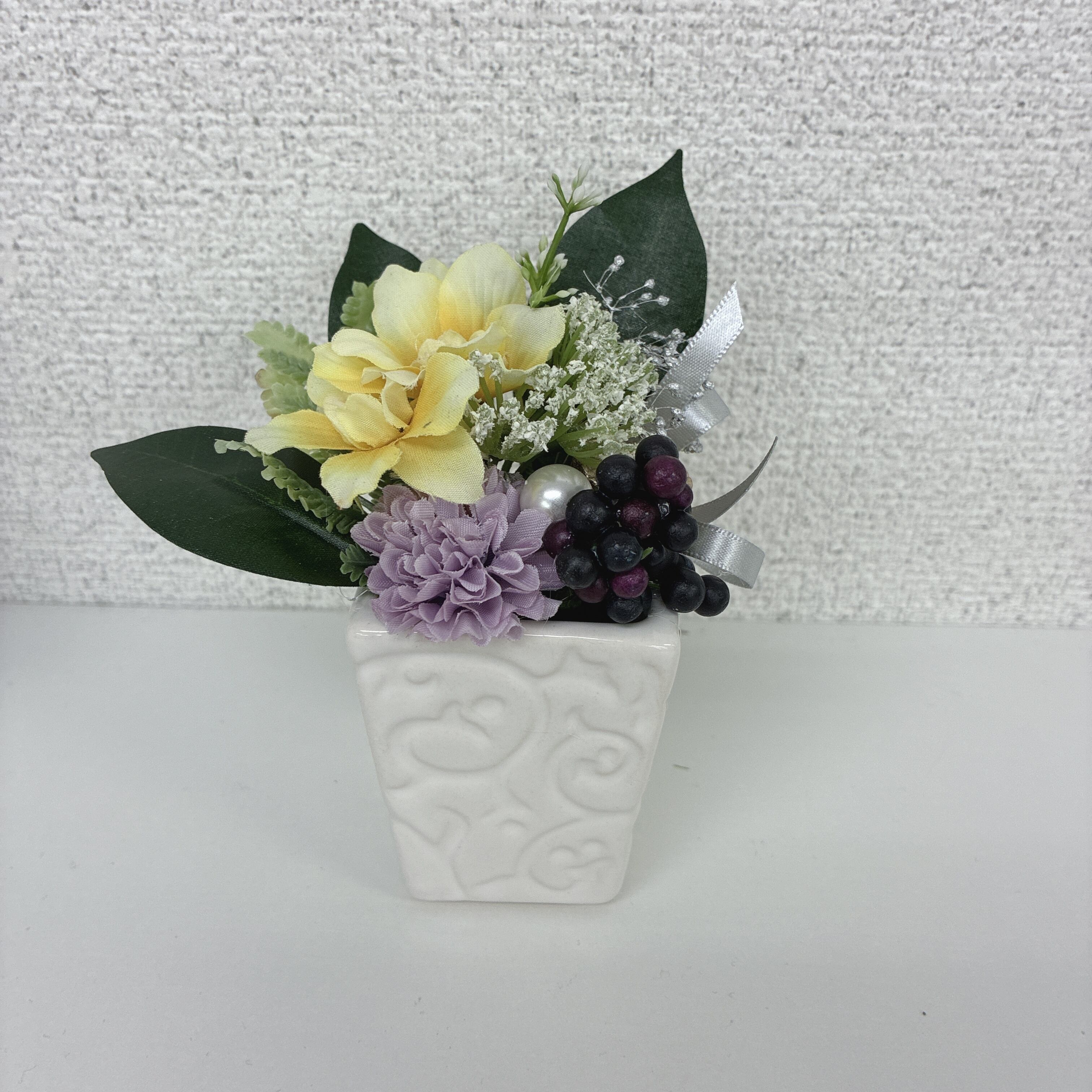 心静まるデザインが美しい「お供え花 白」。このアイテムは、純白の花瓶とお花が織りなす優雅なアレンジメントで、大切な方を偲ぶための特別な贈り物として最適です。思いを込めたお供えとして、故人を偲ぶ場面で、特別な存在感を放ちます!