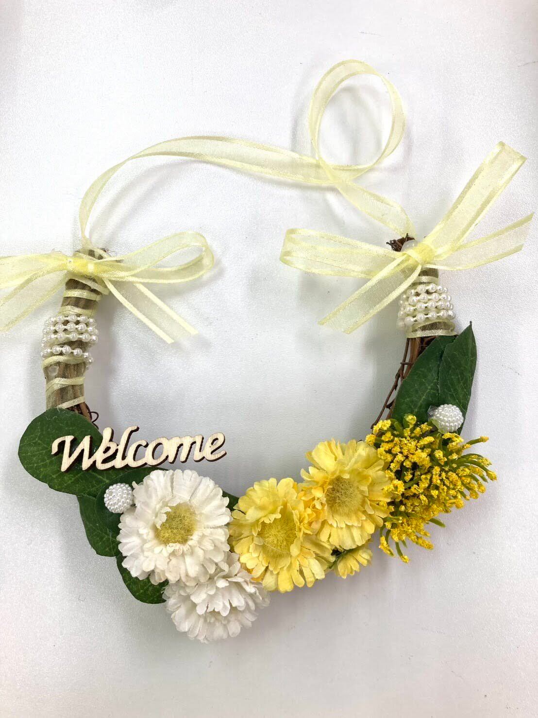 明るくて元気が出るデザインが魅力の「幸せになる黄色いお花のハーフリース」。このアイテムは、鮮やかな黄色のお花で構成されたリースで、お部屋に明るい雰囲気をもたらします。ご自宅のインテリアとしてはもちろん、大切な方への贈り物にも最適な特別な存在です!